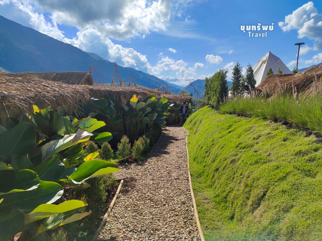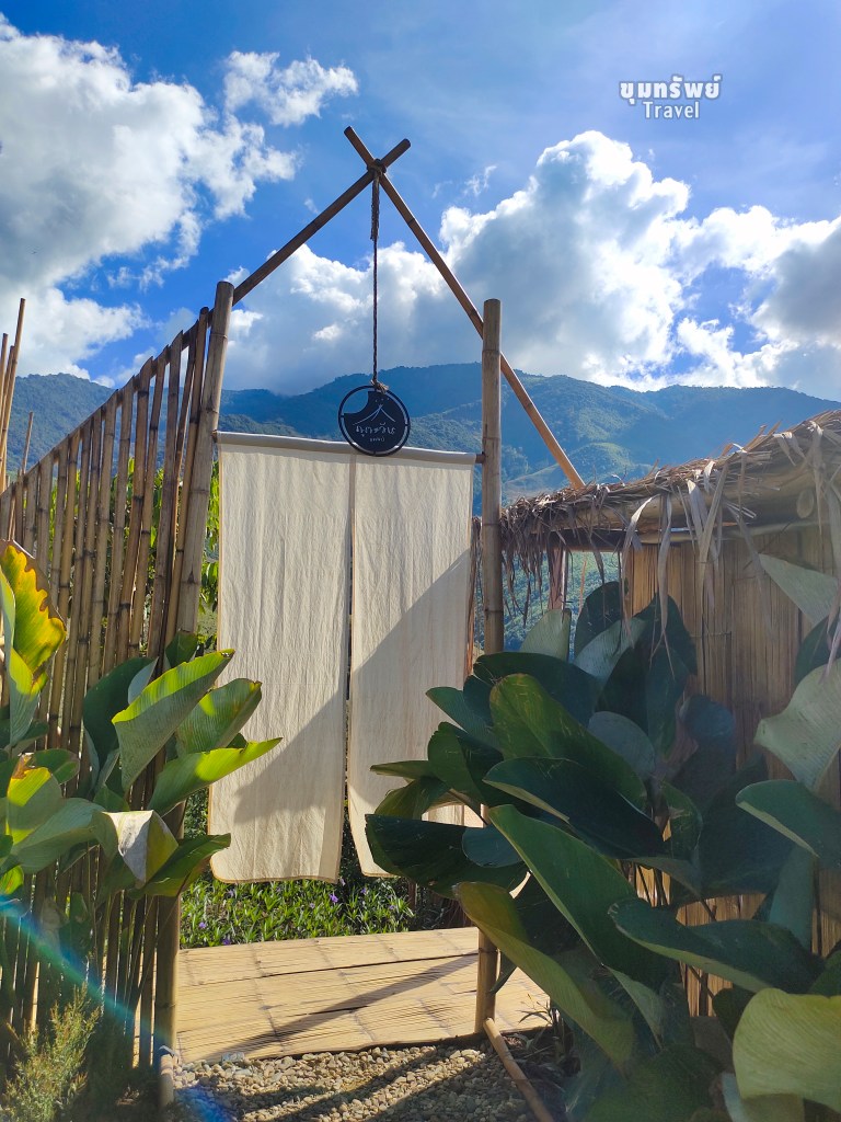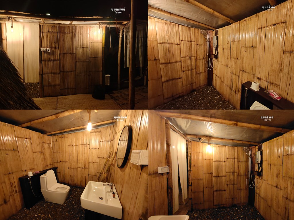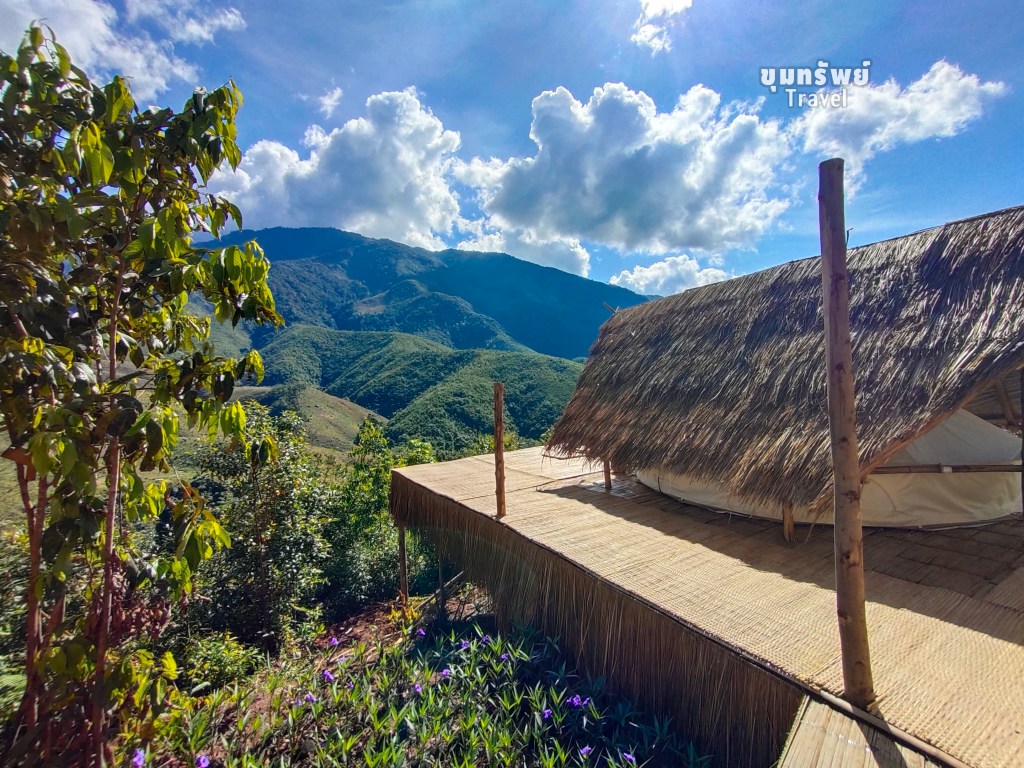 ที่พักเป็น เต็นท์กระโจม พร้อมห้องน้ำส่วนตัวอยู่ข้างหลังเต็นท์กระโจม แต่ยังคงอยู่ภายในโซนห้องพัก กับบรรยากาศภูเขาสุดอลังการ