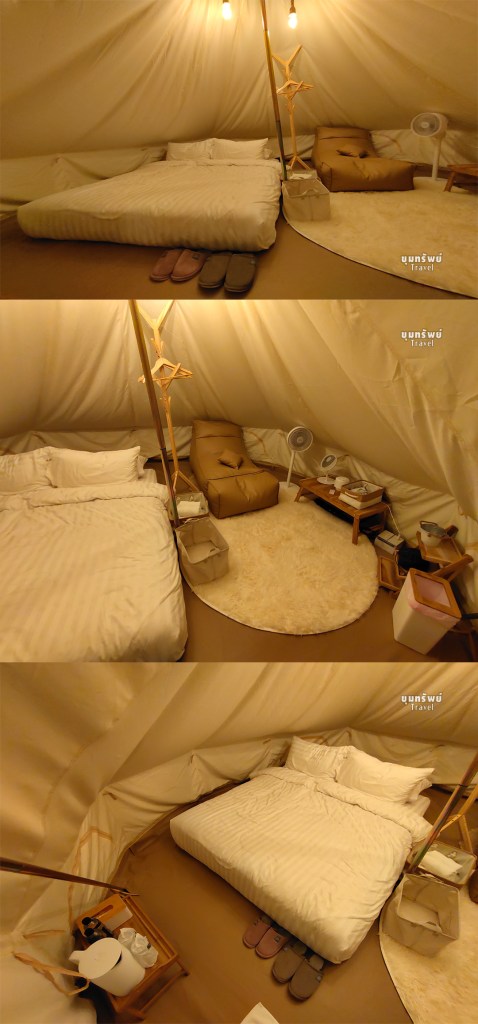 ภายในเต็นท์กระโจม มีสิ่งอำนวยความสะดวกต่างๆ รวมถึงปลั๊กไฟ ไดร์เป่าผม ก็มีให้จ้า