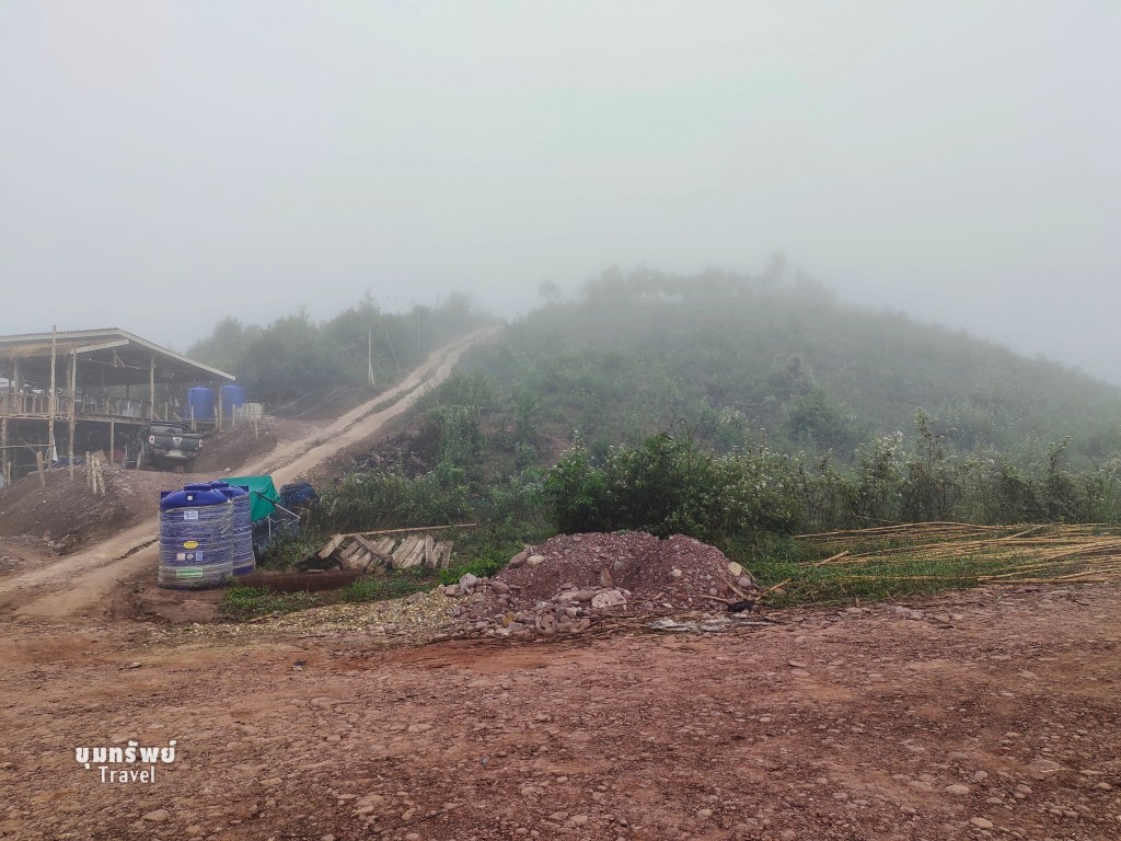 ขณะชมทิวทัศน์อยู่นั้น ก็มีชาวบ้านเดินมาคุยกับพี่ชายเรา แล้วชวนพาไปเดินป่า ที่อยู่หลังหมอกปกคลุม มีลำธารด้วย ไปไหม