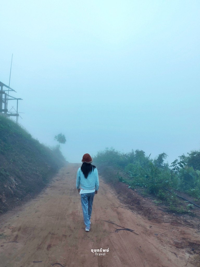 เดินลงภูเขา เดินออกกำลังกายยามเช้า ท่ามกลางหมอกขาวและอากาศหนาวเย็น