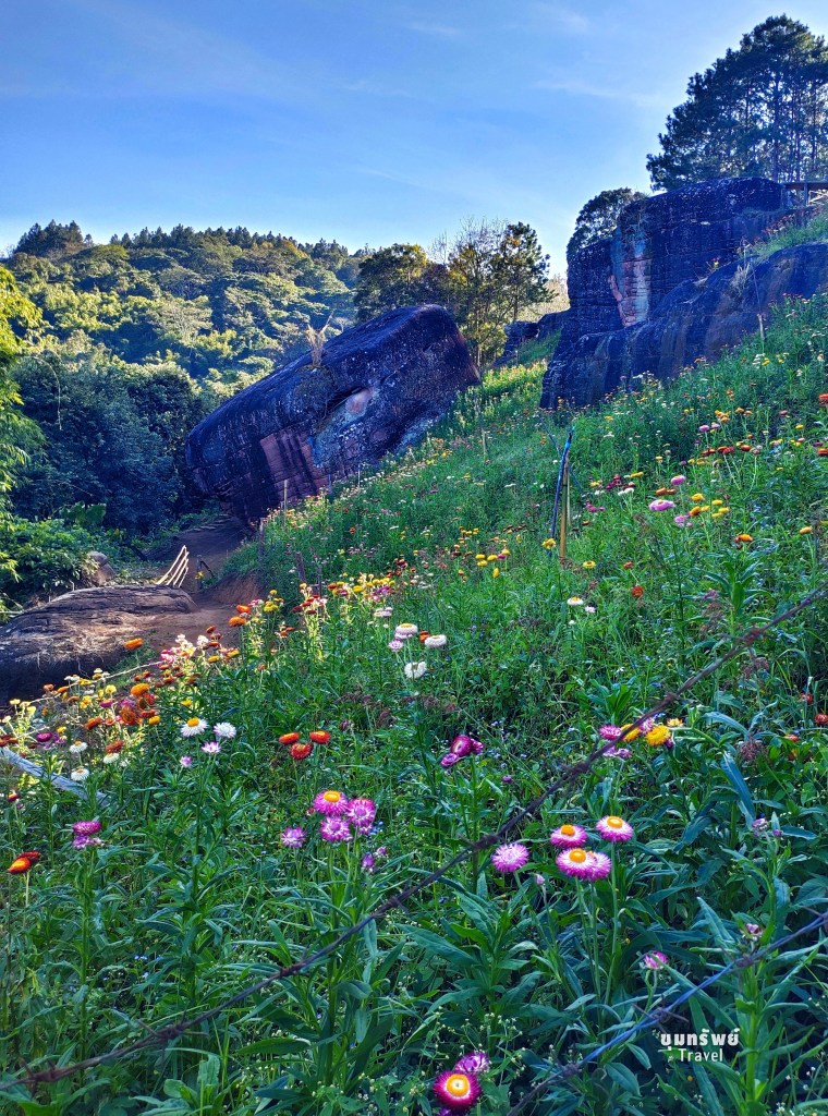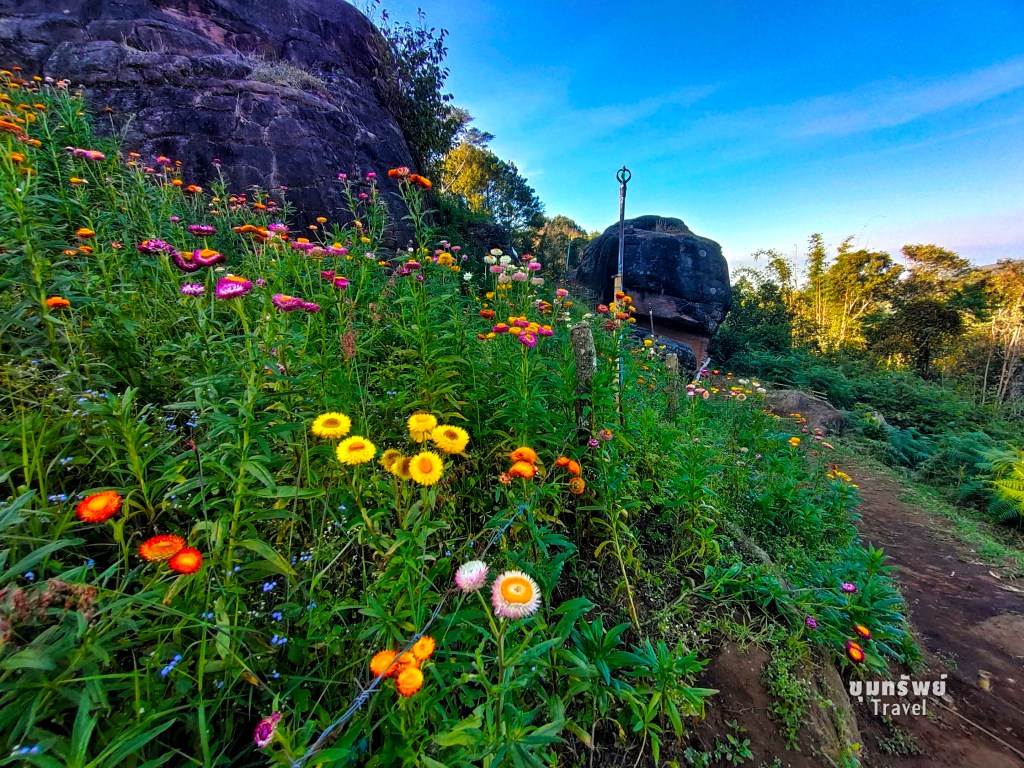 แต่ถ้าเดินไหว ก็จะได้เห็น ทุ่งดอกกระดาษริมผา หลากหลายสีสัน สวยงาม อลังการ