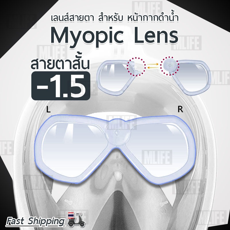 สำหรับคนสายตาสั้น ก็สามารถดำน้ำตื้นดูปะการัง มองเห็นได้อย่างชัดเจน ด้วยเลนส์สายตาสั้น ที่สามารถแปะเลนส์ ติดกับหน้ากากดำน้ำแบบเต็มหน้าได้